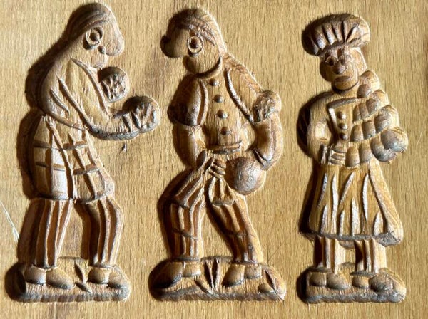 Vooroorlogse speculaasplank met afbeeldingen aan beide zijden. Grappige voorstellingen.
