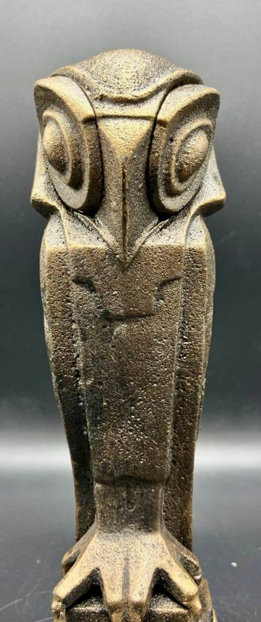 Gegoten beeltenis van een gestileerde uil naar Coenraad.