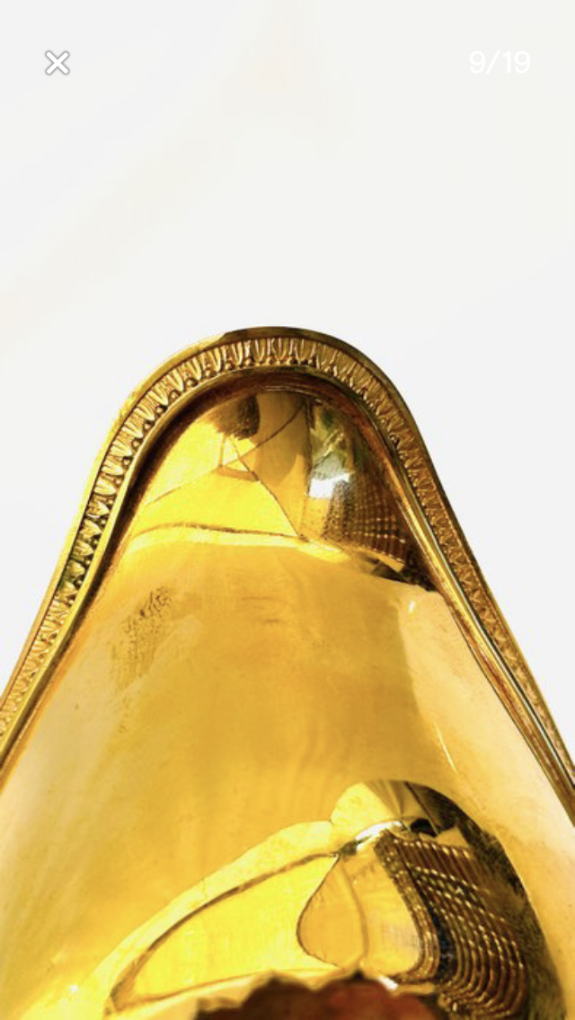 Juskom en lepel in kleinformaat van goudmetaal uit Frankrijk. Periode 1850-1900.
