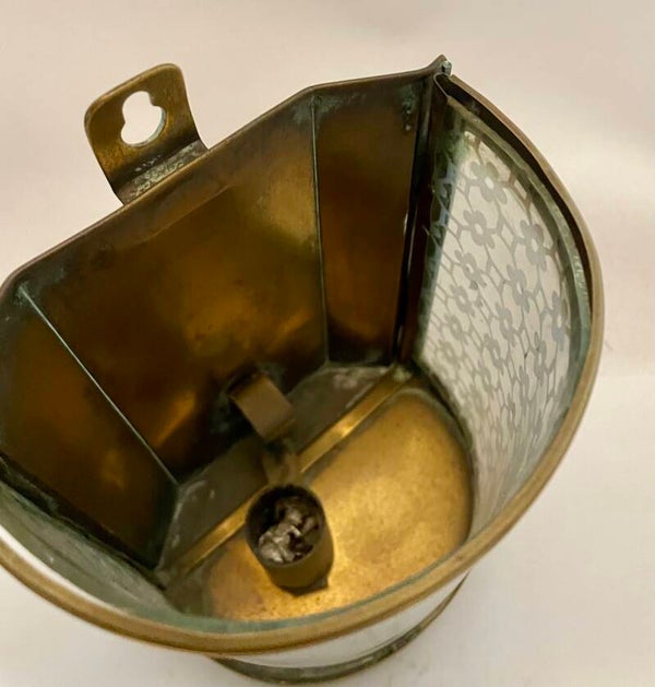 Werkelijk schitterend afgewerkte wandkandelaar van rond 1850. Bewerkt glas, deurtje in geelkoper. Geeft een fraai beeld wanneer ze brand.