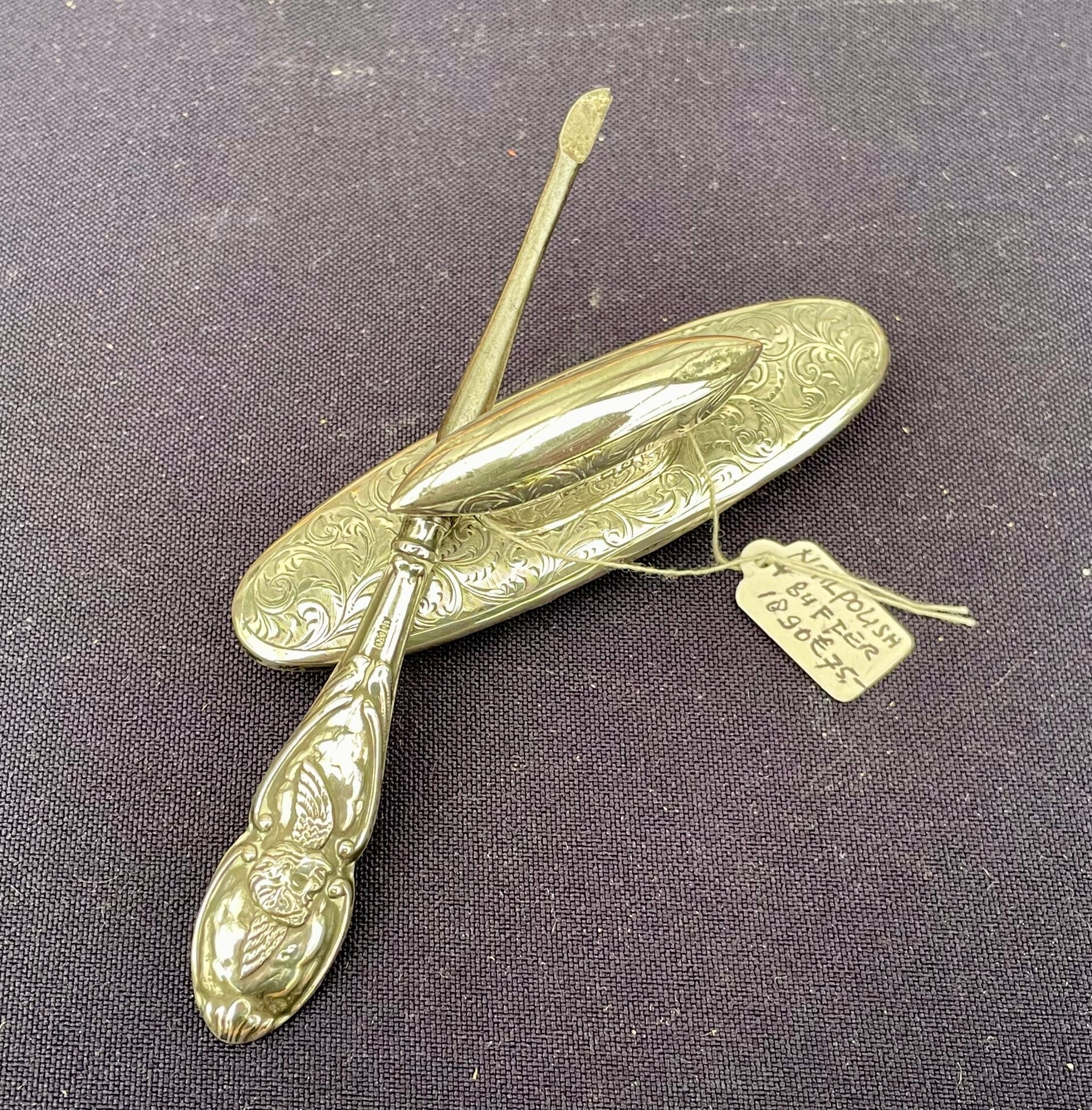 Sterling zilveren picker en nagelbuffer met handvat en cherubijn, 1904, gemaakt door Henry Matthews. Zeldzaam